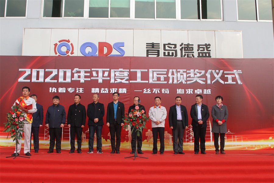 11月27日上午,平度市首屆“平度工匠”表彰頒獎儀式在青島德盛機(jī)械制造有限公司隆重舉行。平度市委常委、市統(tǒng)戰(zhàn)部長、市總工會主席王富軍同志,青島德盛機(jī)械制造有限公司董事長孫佩璋同志,市委黨史研究中心副主任、市農(nóng)村黨員干部現(xiàn)代遠(yuǎn)程教育管理中心辦公室主任王鵬杰同志,市人社局黨組成員陳希成同志,市發(fā)改局黨組成員、副局長姜學(xué)慶同志,市工商聯(lián)黨組成員方永樂同志,市總工會黨組成員、副主席趙笑麗同志,市總工會黨組成員王玉芬同志出席頒獎儀式,并為獲得首屆“平度工匠”稱號的10名同志頒發(fā)了榮譽(yù)證書和獎金,為獲得“平度工匠”提名獎的10名同志頒發(fā)了榮譽(yù)證書。