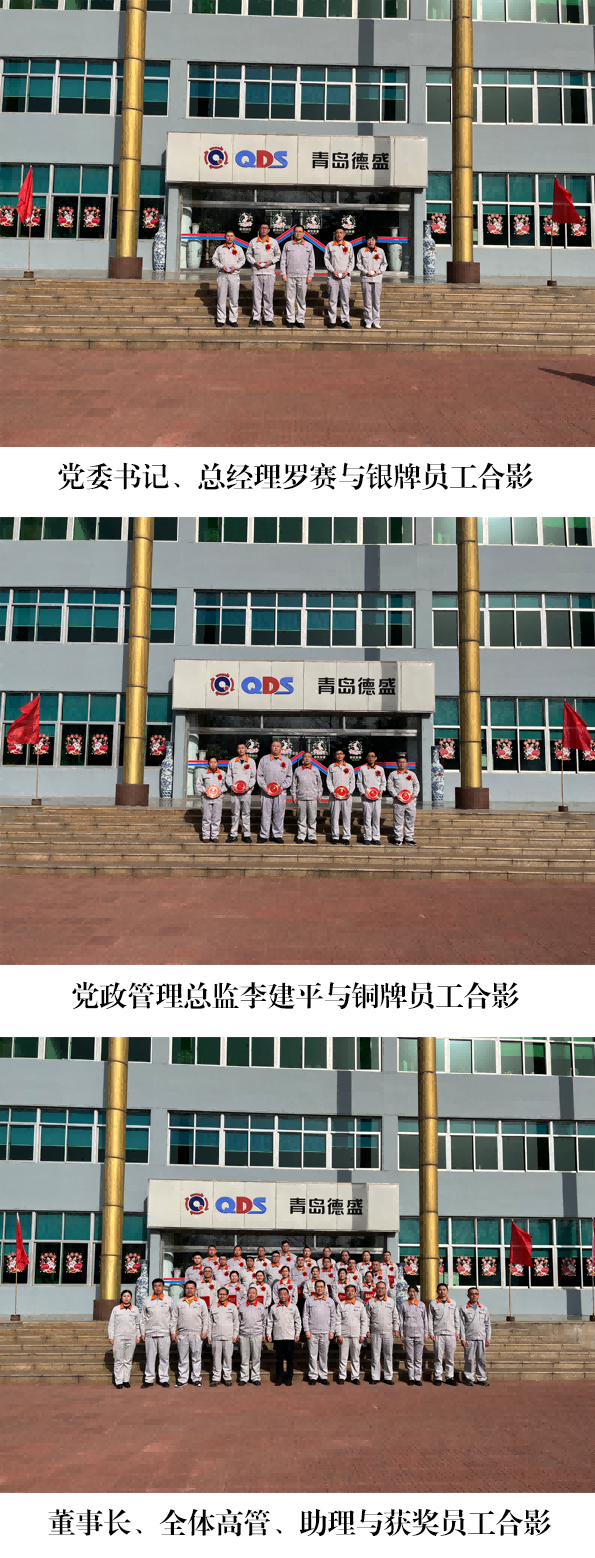 頒獎結(jié)束后,董事長、全體高管、助理與獲獎員工在辦公樓前合影留念。